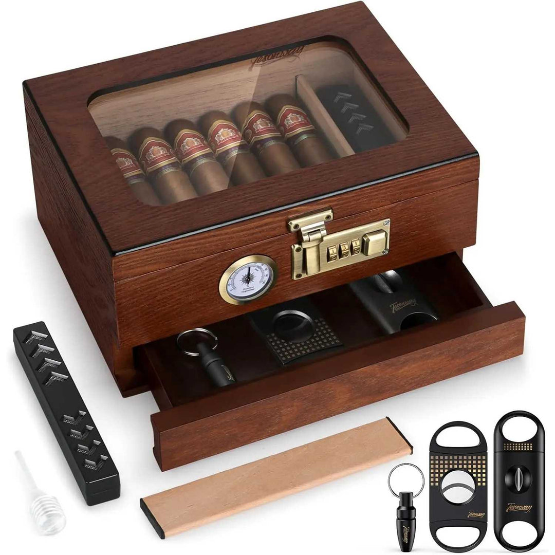 Valentia Cedar Desktop Humidor – Vintage Lock & Glass Top