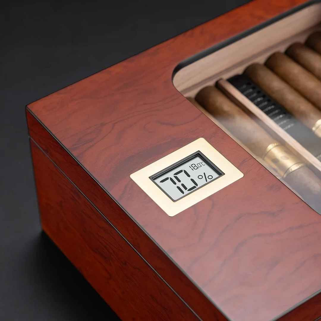 The Connoisseur strikes the perfect balance between capacity, visibility, and classic design. It is the ideal choice for the enthusiast whose collection has grown beyond a starter humidor but who doesn't yet require a large cabinet. The prominent display window sets it apart, turning your collection into a focal point and conversation piece.Unlike opaque boxes, The Connoisseur allows you to appreciate the beauty of your cigars daily. It’s built for the person who not only enjoys the ritual of smoking but also takes pride in the art of collecting. If you seek a reliable, mid-capacity humidor with a timeless aesthetic and a clear view of your prized cigars, The Connoisseur is the perfect fit.