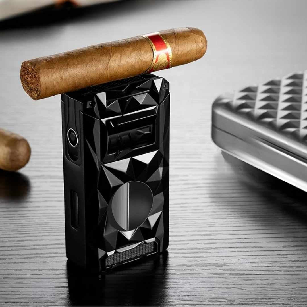 Its robust windproof flame is paired with four finely crafted integrated tools—V-cutter, scissors, punch, and more—designed for precise and effortless operation. Whether you're preparing a cigar, opening a package, or handling other tasks, The Vertex delivers versatility without compromise.
