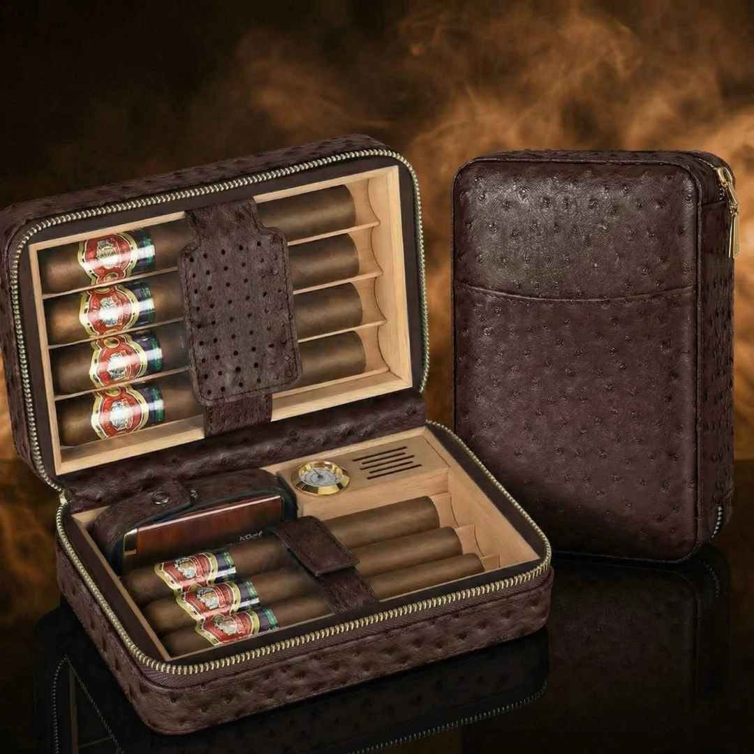 - Capacité de 7 cigaresCet étui est conçu pour accueillir confortablement des cigares de gros calibre jusqu'à 58 de diamètre et 17,5 cm (6,9 pouces) de longueur. Bien qu'il puisse contenir des cigares de calibre 60, veuillez noter qu'ils risquent d'être un peu serrés.