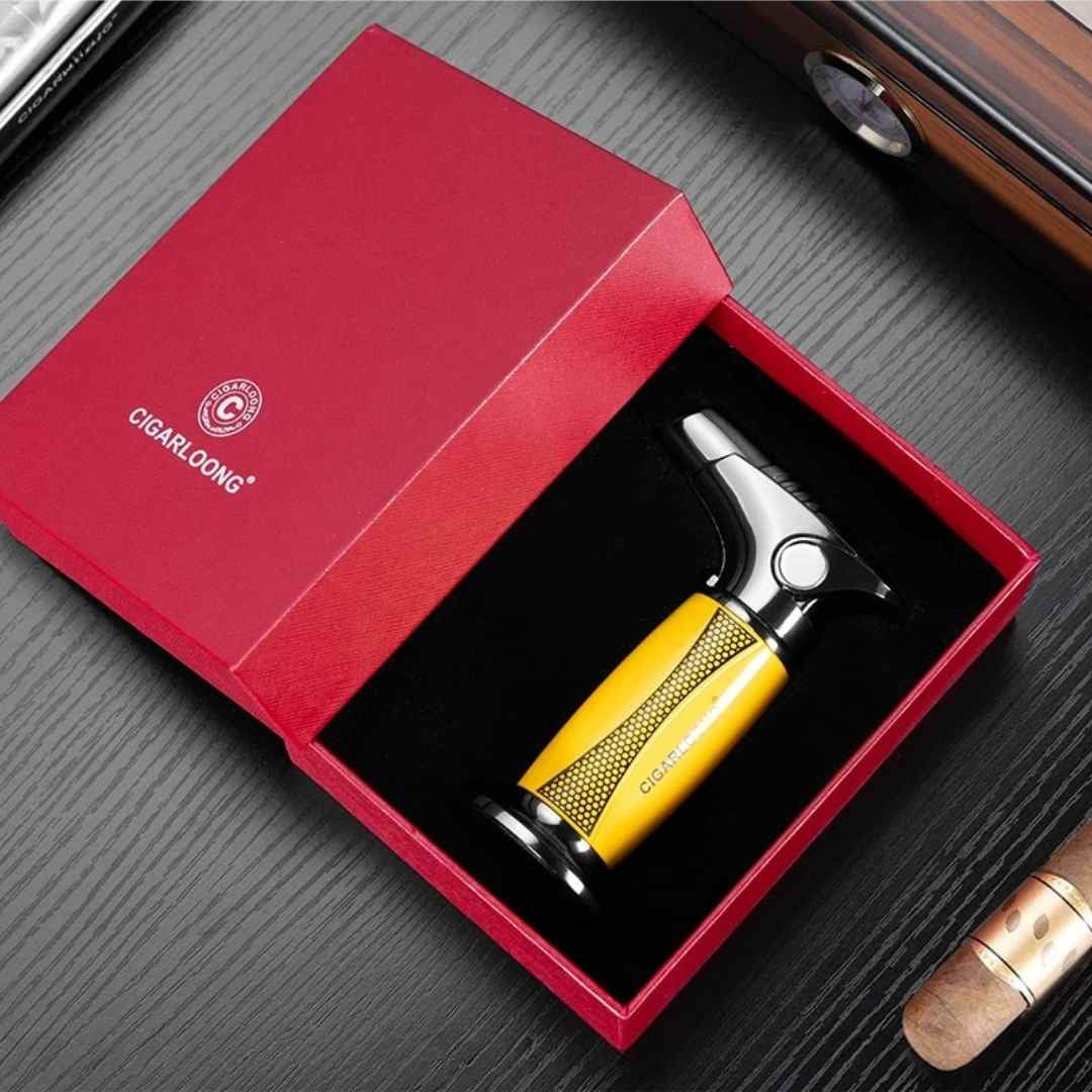 Élégant et robuste, le briquet torche Ion Torch présente un format compact qui tient parfaitement dans la main ou dans une poche, tandis que sa construction solide inspire confiance et qualité. Son emporte-pièce intégré offre une grande polyvalence, vous permettant de préparer votre cigare avec un seul outil.